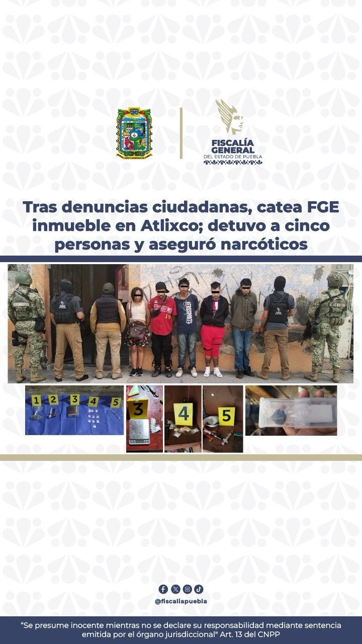 Cateo en Atlixco deja cinco detenidos y múltiples dosis de drogas aseguradas 💬 Tu voz…